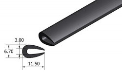 Black rubber extrusion. Trim for safe protection of an edge, as per illustration. 12mm x 6.7mm wide, with 3mm slot