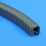 Push-on edge trim, self gripping carrier, woven repp cloth covered, offered in black, grey or red colours. Outside measure approx 14.5mm x 8mm. designed for fitting over approx 1.5mm maximum panel...