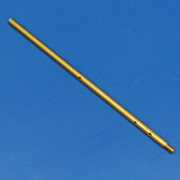 Lucas CWX type wiper motor spindle. Made from brass. 165mm long, 5mm diameter, 6mm long threaded section at one end, three cross holes 1.5mm diameter at 20mm, 34mm and 88mm from the threaded...