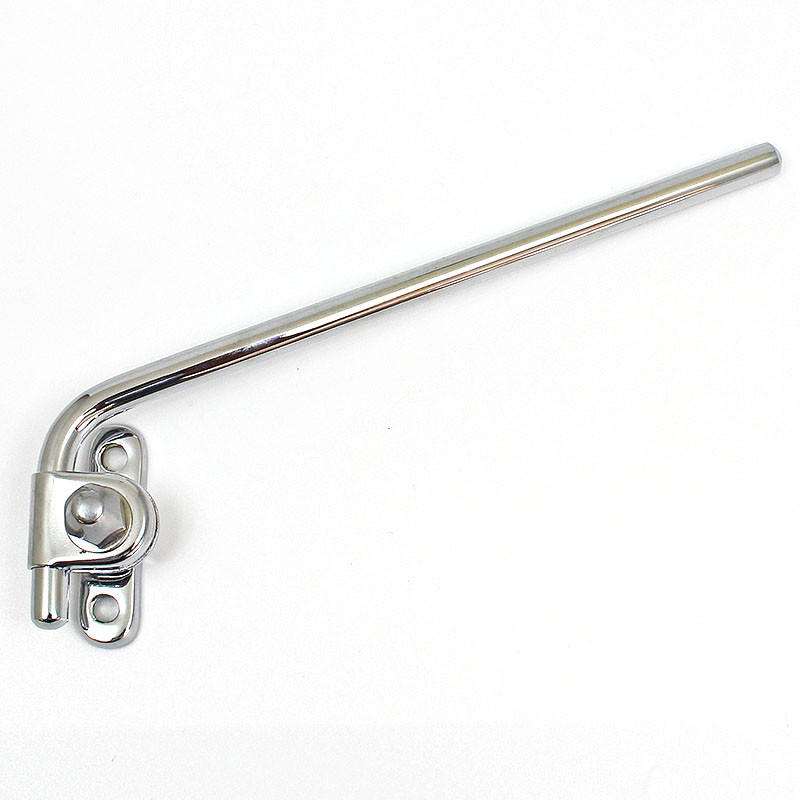 Non-adjustable cranked rod mirror arm, available in chrome or nickel plated finish - please make your selection from the option box. Arm base dimensions 96mm x 21mm with two approx. 6mm diameter mounting holes with 75mm between centres. 7/16" (11mm) diameter rod approx. 150mm long. Offered for LEFT or RIGHT side fitting. Please note that style may vary from illustration. Lost wax cast bronze base with solid brass rod.