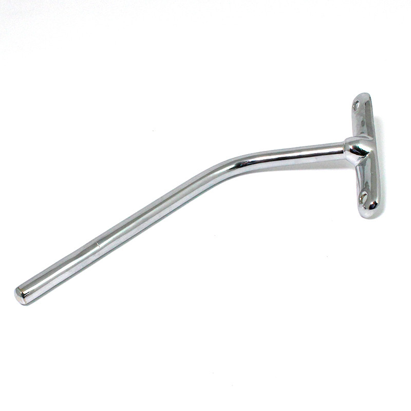 Non-adjustable cranked rod mirror arm, available in chrome or nickel plated finish - please make your selection from the option box. Arm base dimensions 96mm x 21mm with two approx. 6mm diameter mounting holes with 75mm between centres. 7/16" (11mm) diameter rod approx. 150mm long. Offered for LEFT or RIGHT side fitting. Please note that style may vary from illustration. Lost wax cast bronze base with solid brass rod. -- right side fitting.