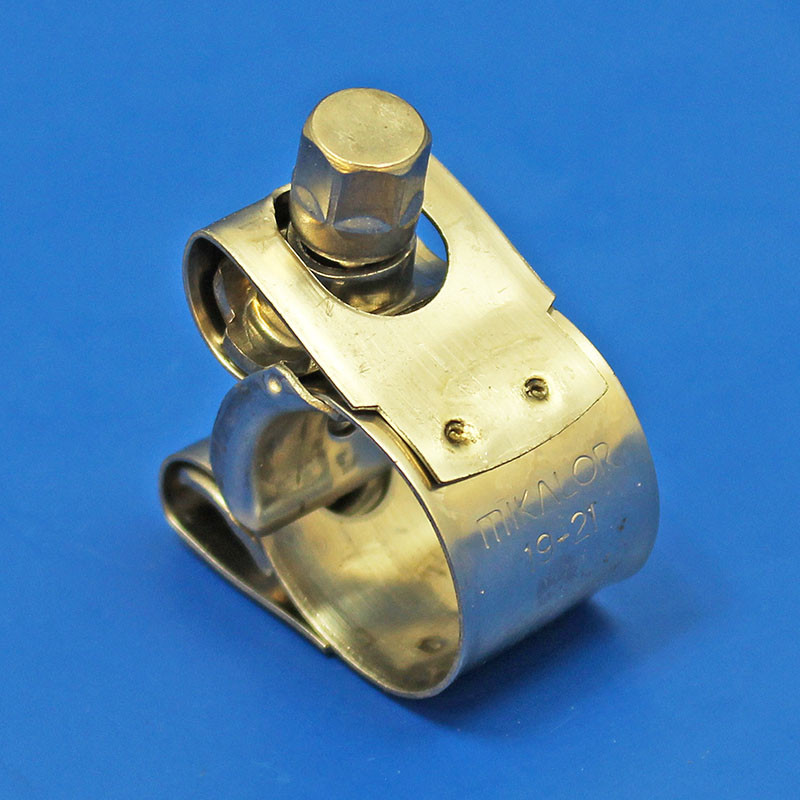 19mm - 21mm All Stainless Steel Mikalor Supra W4 clamp - Swivel bridge, bevelled edges, captive nut - high torque (up to 10Nm) for high-pressure applications