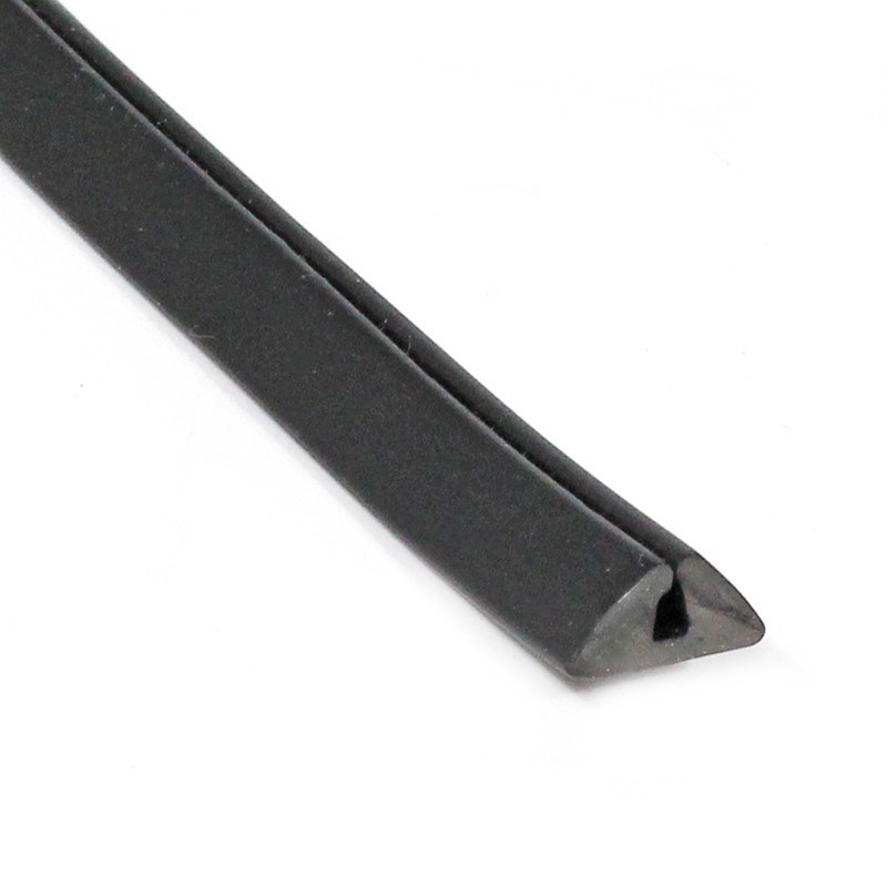 Bumper over-rider bead, black plastic, approx. 10mm wide base with a central 2mm wide slot for fitting on to the metal edge. Triangular section.