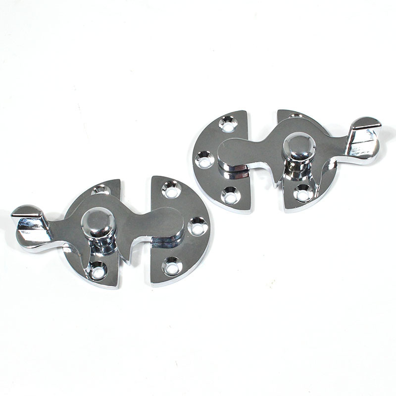 Small safety throw over type catch, base size approx 67mm x 22mm (supplied handed). Chrome on brass.