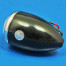 Vintage 'Toby' side lamp equivalent to Lucas part number 1142. Originally fitted to many quality cars including Rolls-Royce and Bentley. All brass construction with gloss BLACK finish to lamp body and plinth, with a CHROME rim. Takes bulb part numbers B205 (6V) or B207 (12V) - 12V, 5W bulb supplied as standard. Rim, lens, bulb holder arrangement as original lamp.