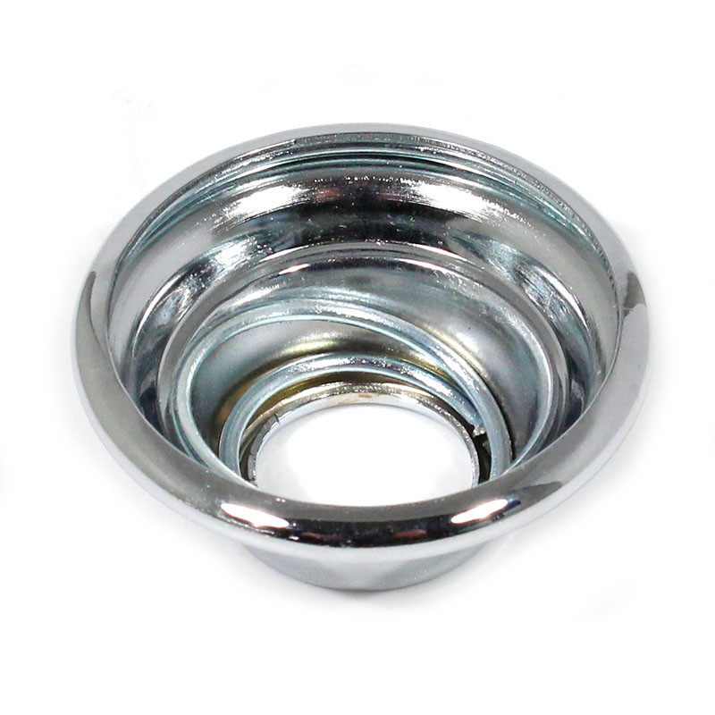 Spring loaded escutcheon for interior door handles and window winders. Chrome finish, approx 38mm diameter x 17mm high. Centre hole approx 15mm.