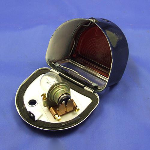 'D' Lamp with full red glass lens, equivalent to the Lucas ST51 type lamp. Fitted with double contact bulbholder (for stop and tail lamps). Body 87mm wide x 75mm tall x 54mm deep, backing base plate 95mm wide x 84mm tall. Clear side number plate illumination lens. Black coated finish. Uses a BAY15D bulb. For bulbs, please see our B384 (6v) or B380 (12v).