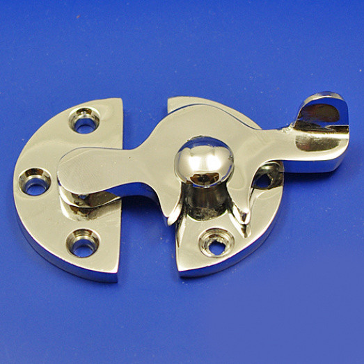 Large throw over type safety catch, base size approx 65mm x 52mm (supplied handed), chrome on brass.