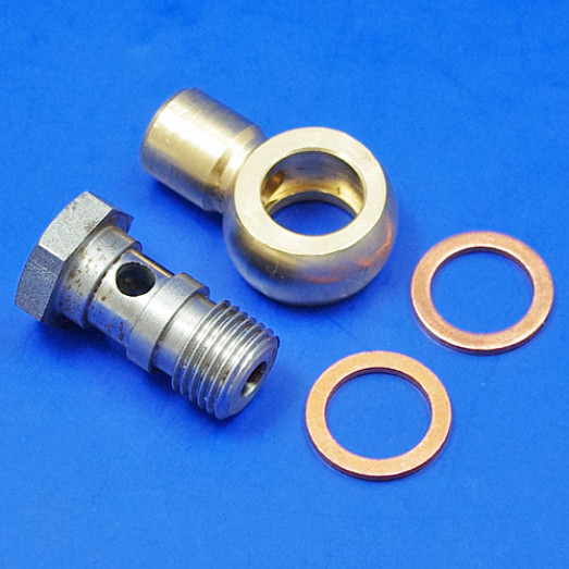 Solder type banjo union supplied complete with 1/4"BSP bolt and washers. The 5/16 " copper pipe is soldered into the banjo socket. If a smaller pipe is to be fitted a packing piece can be also fitted before the solder is applied to fill the gap.