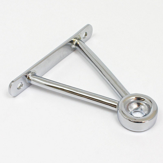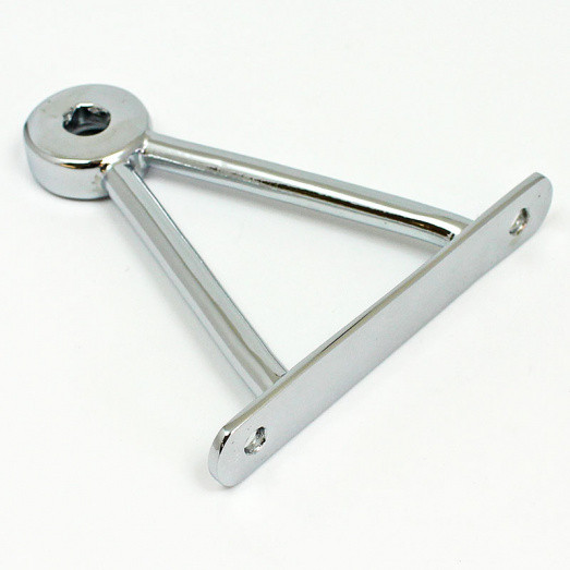 Triangular mirror mounting bracket, similar to the Lucas style mount used on some MG's. Flat base plate 95mm x 15mm with 75mm hole centres. Two 7mm rods connect the plate to the mirror head boss, overall bracket height 98mm. Lost wax cast in bronze, available in chrome or nickel plated finish, please select from the option box below.