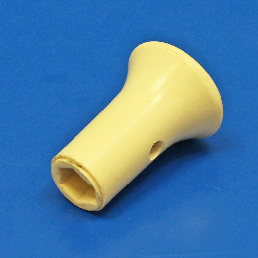 Plain cream Bakelite knob. Made from original Lucas tooling. 1/4" across flats hex socket, 19mm o/d head x 29mm long with hole for the spring release pin.