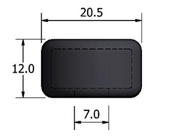 Hollow moulded cap 20mm diameter x 11mm high with a 6mm stud hole entry into the hollow.