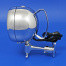 Reproduction pillar-mounted spot lamp or searchlight. Chrome plate on brass lamp equivalent to original Raydyot HS495 or HSU495 pattern, with adjustable mounting arm and bracket with handle. Lamp 112mm diameter x 93mm deep, handle 100mm x 25mm, mounting arm 115mm long with 41mm hole centres (bracket overall 57mm x 13mm). Fitted with high-quality ball joint allowing universal adjustment and positive lock by finger control. Diffused type glass with clear central section. Supplied complete with bulb and flex. Similar in style and function to some early Eversure and Marchal searchlight models.