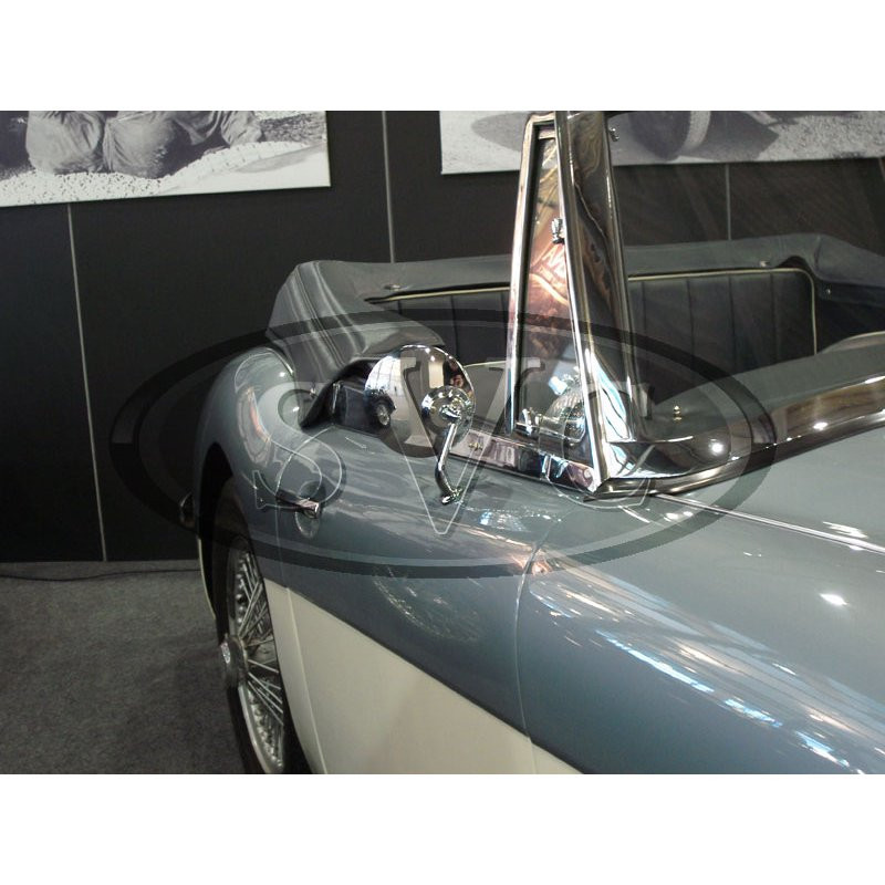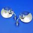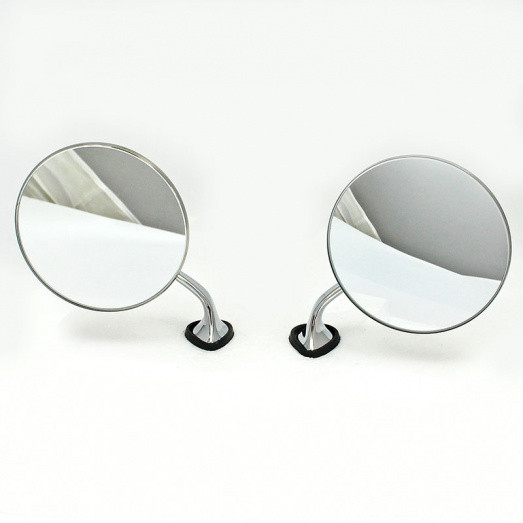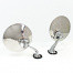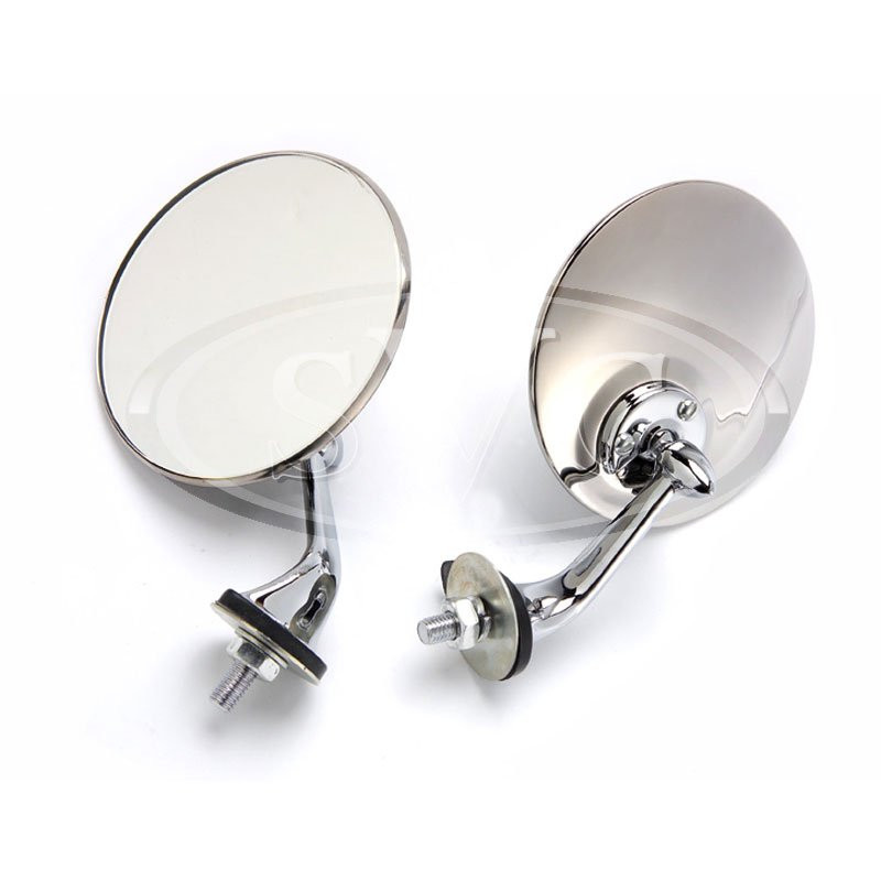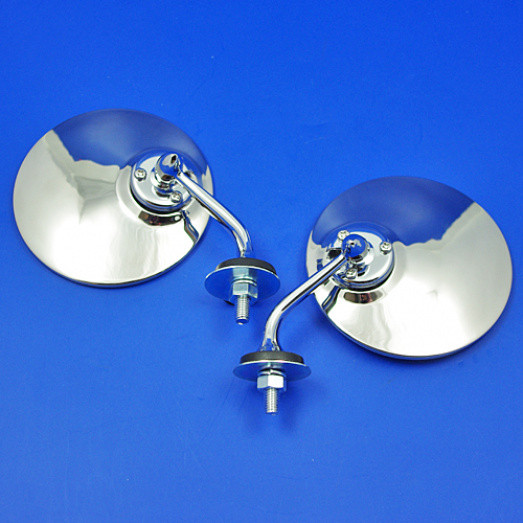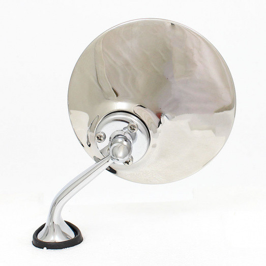 Wing mounted mirror equivalent to the Lucas 406 model; an early mirror that remained extremely popular for many years. Ball joint mounted 4 3/16" (106mm) diameter stainless steel mirror head, with chromium stem and single M8 mounting stud. We offer this mirror in handed pairs with either CONVEX or FLAT glass, or left or right handed mirros individually with CONVEX glass. Rubber pad supplied for mounting footprint dimensions 42mm x 32mm. Chrome plated finish only.