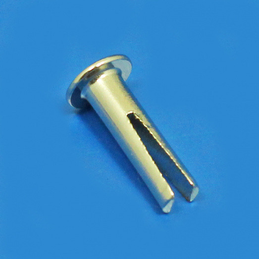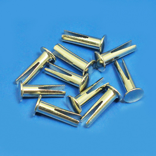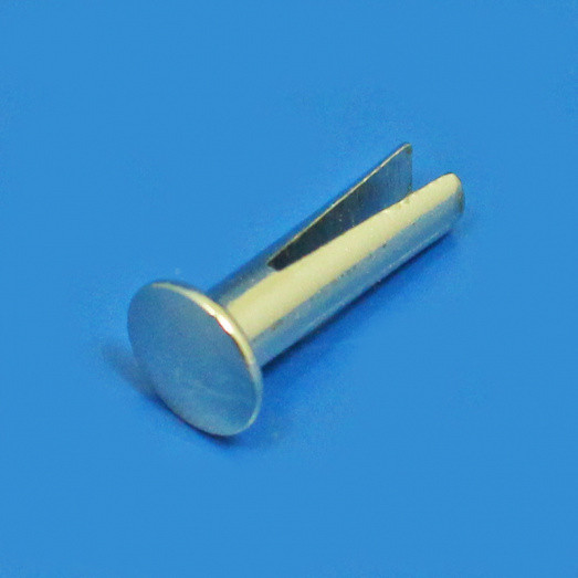 Nickel plated steel bifurcated rivet, 5.5mm diameter head, stem diameter 3mm x 11mm long under head. For fixing upholstery etc. Per packet 10
