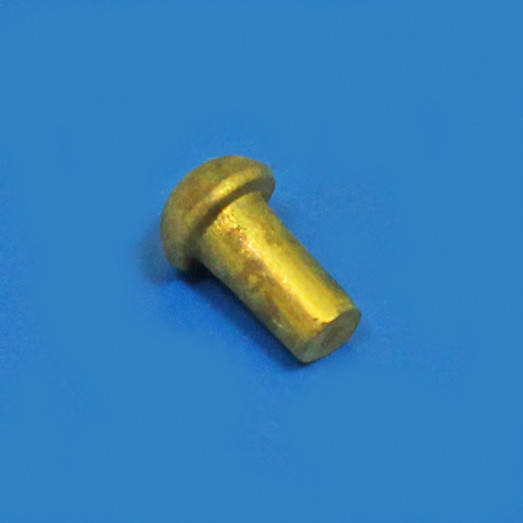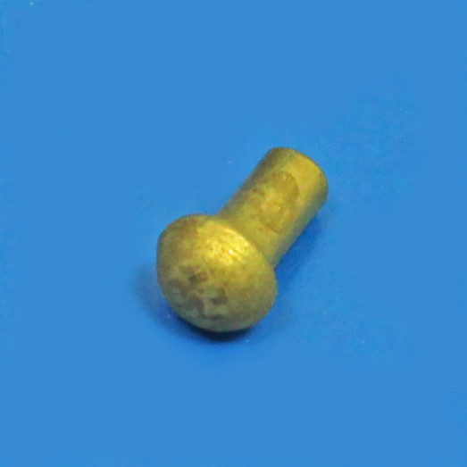 Solid brass round head rivet, 4.2mm diameter head, stem diameter 2.4mm x 4.6mm long under head. For joining thin sheet metal items etc. Per packet 10