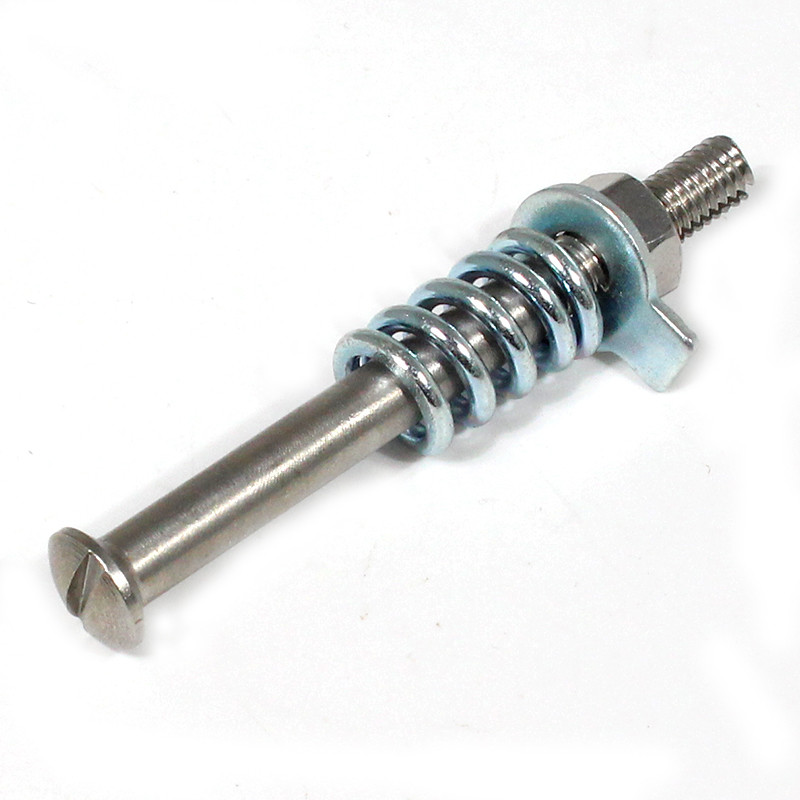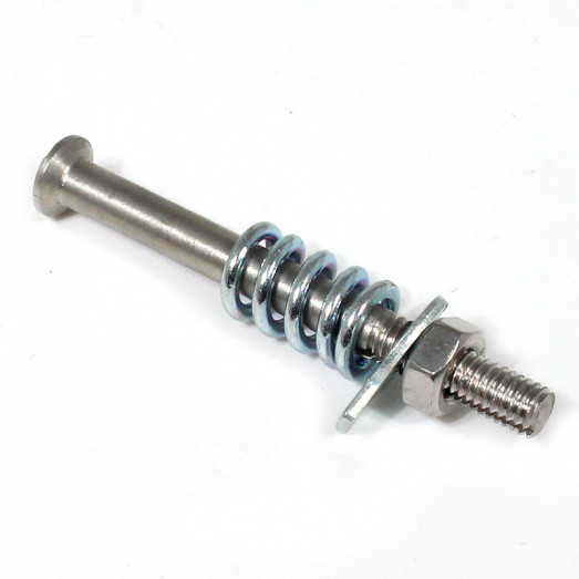 Replacement hinge pin, spring, tag washer and nut for 51mm tall steel self aligning hinge, order brass ball separately. Dimensions, overall length 65mm (61mm under countersink), 6mm diameter threaded section 20mm long with machined grove to locate lock washer.
