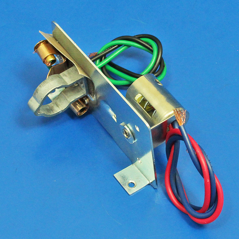 Replacement bulb holder divider plate for 249/428/ST51/'D' type rear lamps. Accepts 1 x BA15S and 1 x BA15D bulbs - one 5W for rear/tail and number plate light, one 5W/21W for tail/brake light. Made to the original specification with regard to hole layout. Three mounting holes, 2.7mm diameter, on offset tabs, distance between outer tab hole centres 64mm.