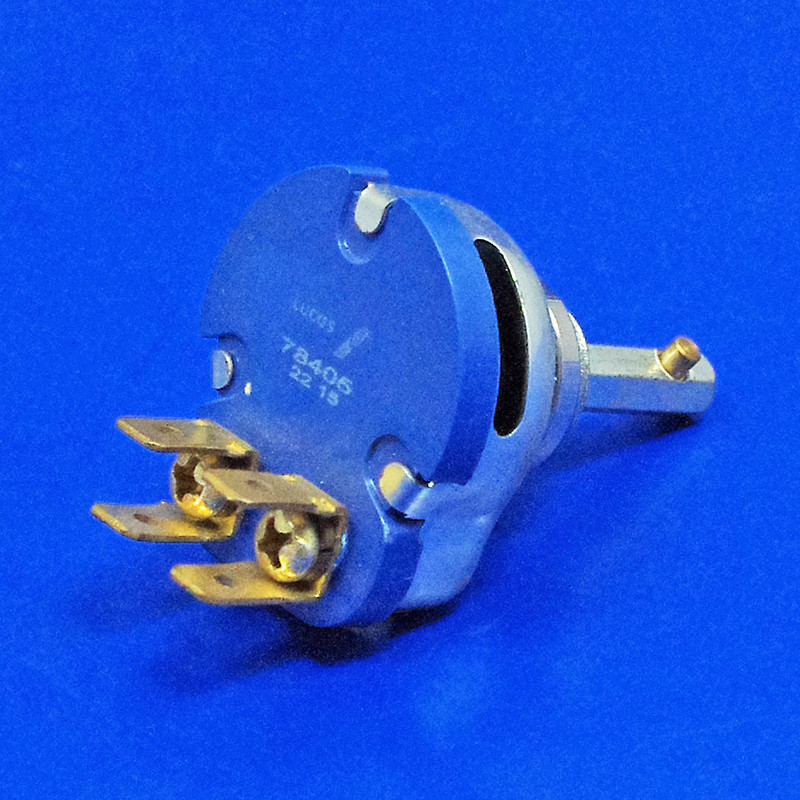 Dash rotary rheostat dimmer switch equivalent to Lucas part number 78405. 6.4mm x 21mm hexagonal shaft. 0-12.5 Ohms resistance, four 6.3mm blade connections. Excludes knob (Lucas part number 54340037). Applications include early Land Rover as well as MGA, MGB Triumph TR4 TR5 TR6 & TR7 and Aston Martin.