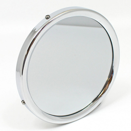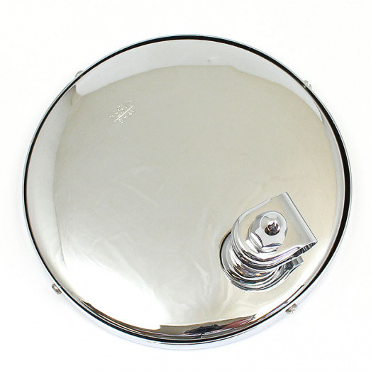 Larger round mirror, 5 5/8" (145mm) in diameter, stamped Desmo. Supplied with either convex or flat glass. Fitted with a 1/2" (12.7mm) mounting clamp as standard. Available chromium or nickel plated, or in polished brass finish. Hand spun in brass, this vintage mirror is a quality recreation of the Lucas 150 model - flat glass as Type 150L and convex glass as Type 150.