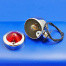 Small side lamp of modern manufacture. Chrome plated body with RED lens. Body approx 58mm diameter x 70mm long. Single mounting stud. Single contact BA15S bulbholder fitted. Maximum bulb size 15 watts (19mm globe size )