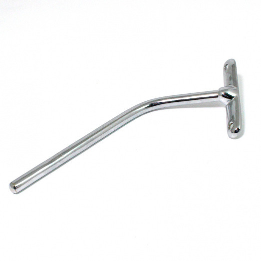 Non-adjustable cranked rod mirror arm, available in chrome or nickel plated finish - please make your selection from the option box. Arm base dimensions 96mm x 21mm with two approx. 6mm diameter mounting holes with 75mm between centres. 7/16" (11mm) diameter rod approx. 150mm long. Offered for LEFT or RIGHT side fitting. Please note that style may vary from illustration. Lost wax cast bronze base with solid brass rod.