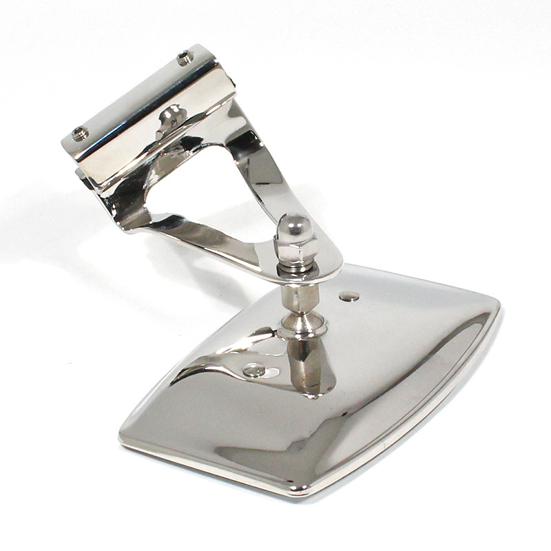 Gutter mount type clamp on stainless steel mirror. CONVEX glass 115mm x 73mm with stainless steel mirror back and cranked mounting bracket. Two screws nip the assembly to the right hand side of the vehicle - to suit the left hand side of the vehicle, the stainless steel bracket will require re-bending slightly.