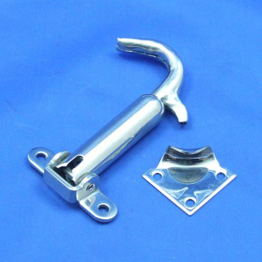 Bonnet/hood catch supplied with pocket. Polished stainless steel parts, 91mm tall overall, base 55mm wide. Choice of 2 hole mount (13mm deep) or 3 hole mount (30mm deep).