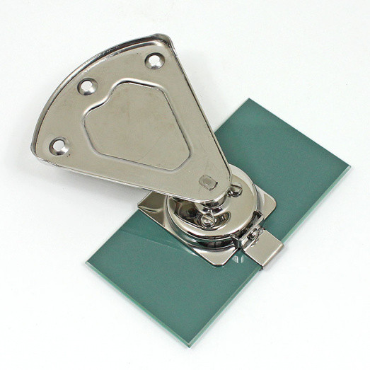 Face mounting larger type vintage interior mirror. FLAT glass 125mm x 66mm which has an attractive bevelled edge. The shaped/embossed mounting bracket (92mm wide) attaches to a bracket, which clamps the top and bottom of the glass, via an adjustable ball socket. Overall mirror height approx 135mm. Offered in polshed stainless steel finish.