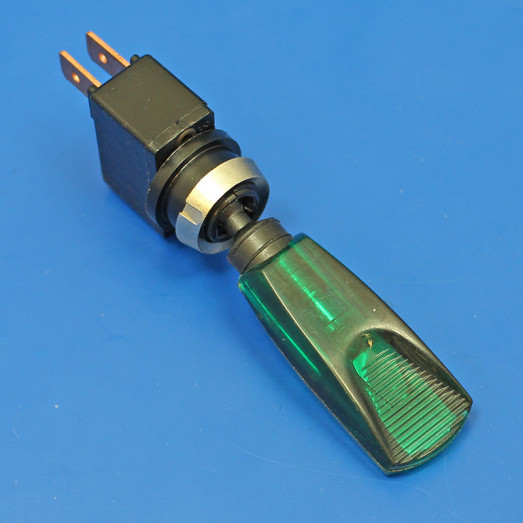 Green 12V illuminated toggle switch. 1.2W BA7S bulb. 12.5mm panel aperture/hole fixing. Maximum panel thickness 7mm. 6.3mm LUCAR terminal connections.
