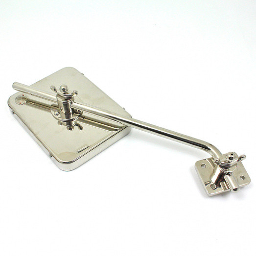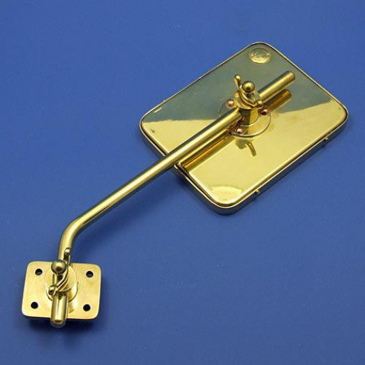 Heavy veteran or Edwardian pattern mirror of a style traditionally manufactured by Toby. Flat mirror glass with bevel edge and heavy rim and backing. Head dimensions 172mm x 135mm. Substantial arm approx 270mm long with very secure mounting base plate 50mm x 63mm. This item is offered in polished brass or with nickel plated finish at additional cost and by special order. The mirror head is hand made in our workshops, the base components lost wax cast with the whole assembly finished by ourselves.
