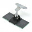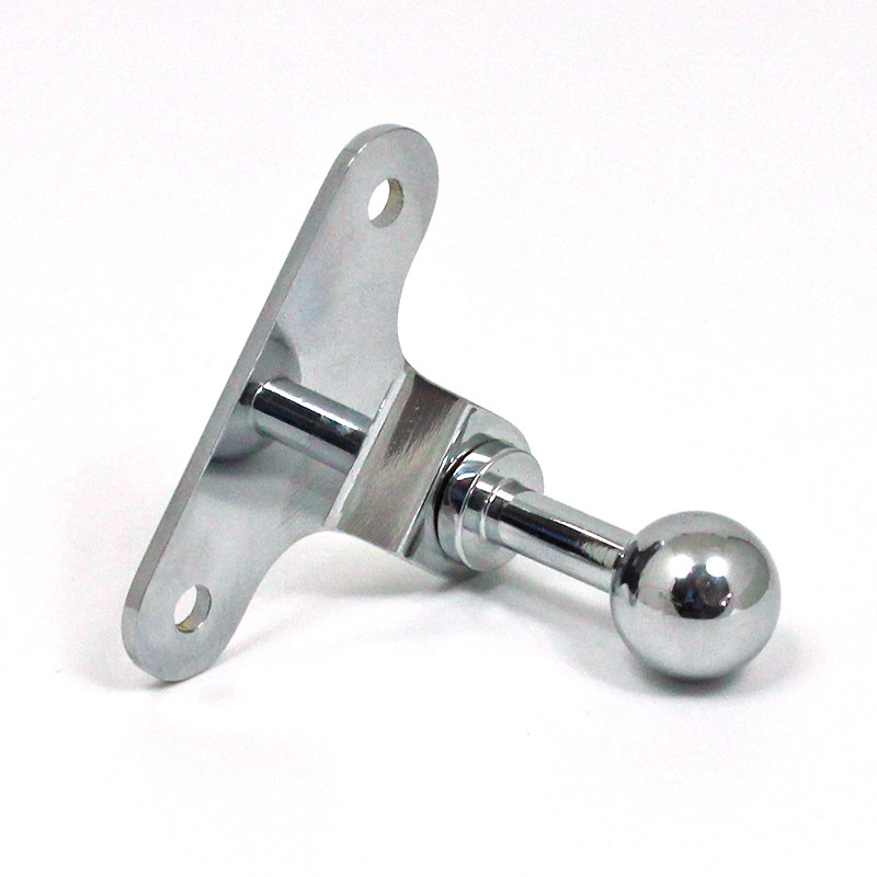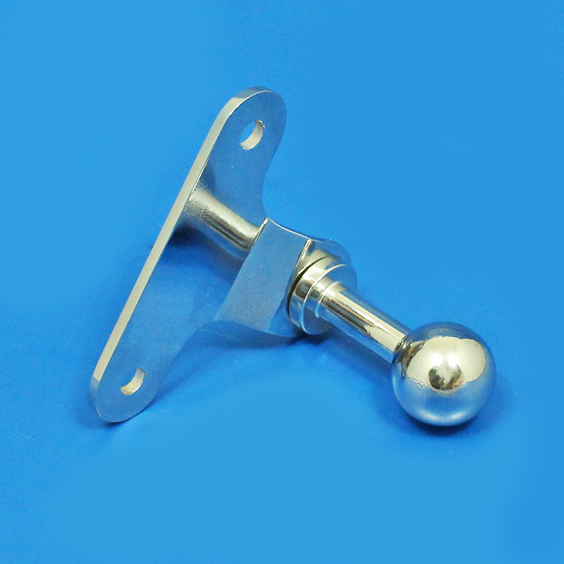Chrome on brass mounting bracket with gloss black powder coated stainless steel mirror glass clamp bracket. Mounting bracket size 56mm wide by 42mm high with two 4.6mm mounting holes, 41mm between centres. Centre of ball 28mm below the mounting bracket holes. End of ball protrudes 40mm from the back of the mounting plate.