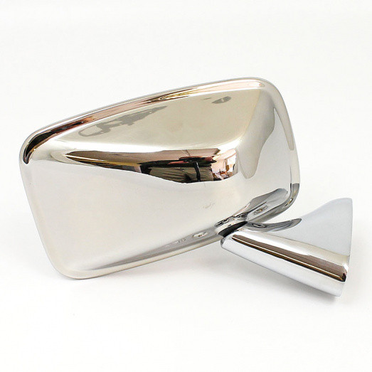 Superb classic chrome mirror that screws to a mounting plate that your attach to your door. Typical of the type used in late 1960's and 1970's. Ideal for many classic cars such as the Mini, MG etc. Mirror head 145mm x 90mm, base footprint approx 85mm x 33mm. FLAT glass. Plinth fixing hole centres 35mm. Offered for left OR right hand door fitting applications.