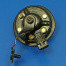 High quality 12V horn made by Klaxon in France. Gloss black finish. KW9 model (CH5070105, 722367). 92mm body diameter, 67mm total depth including front central spigot and rear mounting bolt. Fitted with twisted metal mounting strap finishing with an M8 bolt 75mm from horn centre - bolting upwards to position horn face 30 degrees back from vertical. Supplied complete with mating female connector for ease of wiring