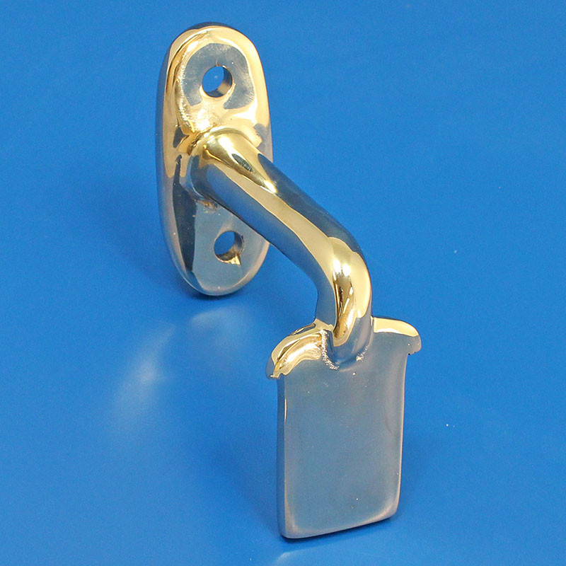 Pair of nickel plated, cast brass rear lamp brackets suitable for diver's helmet rear lamps and similar, requiring spade mounting. Oval mounting base, drilled with 8mm diameter holes at 45mm centres. 76mm tall x 31mm wide, mounting bar 80mm long with lamp spade parallel to base for fitting on the rear of a vehicle. Spade dimensions 30mm wide x 41mm tall x 5mm thick. Cast in brass then polished and nickel plated. Please note - these are sand castings, so cannot be plated to the same standard as bronze lost wax/investment castings and there will be some slight marks in places in the plating. A very nice mounting set for our nickel plated CA1177 part number series lamps.