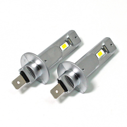 High quality LED upgrade with aluminium heatsink for H1 lamps with the P14.5S base. A PAIR of V30 series lamps with CSP3570 LEDs, 4500LM luminous flux. Replaces a standard H1 bulb in the same size envelope. Flexible application - 11 to 48V DC input, allowing 12V and 24V application. NEGATIVE EARTH ONLY! One high power LED array on each side of the lamp body. In testing, these high quality lamps gave a classic white light when installed in a 5 3/4" spot lamp, while still brighter than a standard 55W H1 bulb. SOLD AS A PAIR