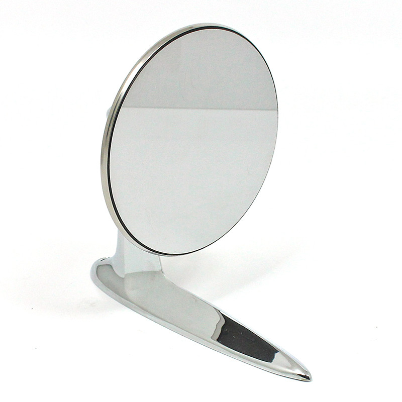 Factory fitment to GM classics of the 50s from Chevrolet, Pontiac, Oldsmobile, Plymouth, though often seen on UK classics and hotrods. Fully adjustable and supplied complete with screws, moulded rubber gasket and fitting template. Fit to door or wing. Polished stainless mirror back with chrome stem. Not handed. Glass diameter approx. 112mm. Length of base approx. 165mm. Overall height 145mm, base 32mm wide 165mm long. Supplied EACH.