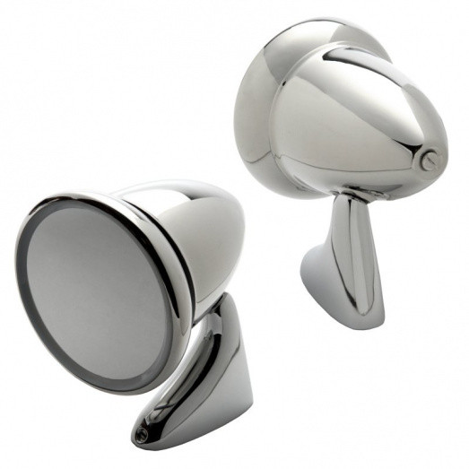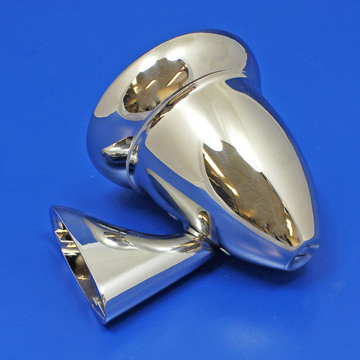 Left side fitting stainless steel door mounted bullet mirror. CONVEX glass. Bullet racing mirror with universal fitment, designed for door mounting as on early Minis and many other classic and kit cars. Polished stainless steel head with a chrome plated die cast stem. Dimensions - 102mm diameter, 78mm x 30mm.